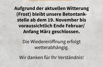 Betontankstelle RWG Taufkirchen: voraussichtlich bis Ende Februar/Anfang März geschlossen!