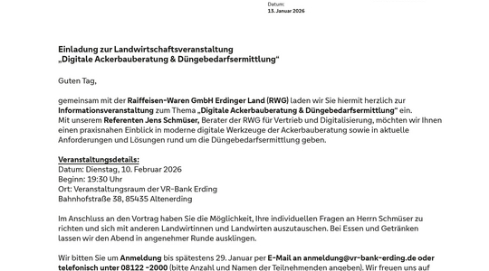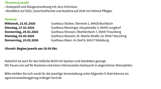 Einladung zur Landwirtschaftsveranstaltung „Digitale Ackerbauberatung & Düngebedarfsermittlung“