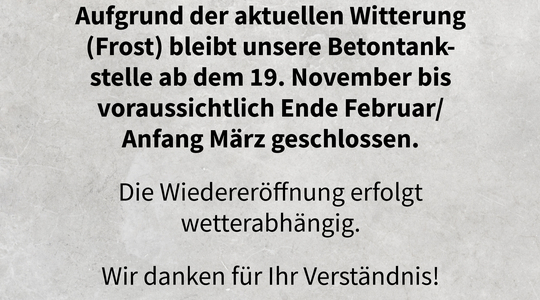 Betontankstelle RWG Taufkirchen: voraussichtlich bis Ende Februar/Anfang März geschlossen!