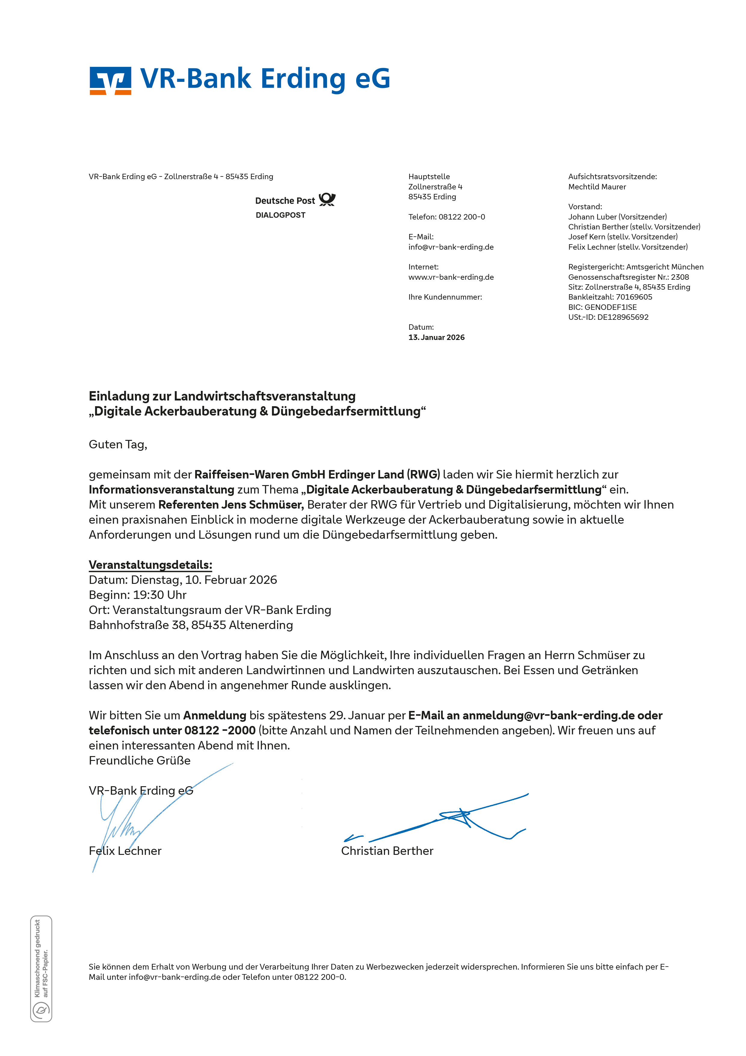 Einladung zur Landwirtschaftsveranstaltung „Digitale Ackerbauberatung & Düngebedarfsermittlung“