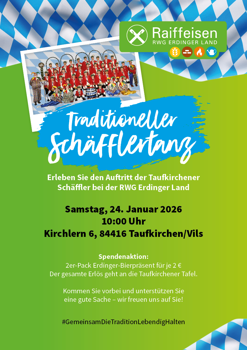Erleben Sie den Auftritt der Taufkirchner Schäffler bei der RWG Erdinger Land